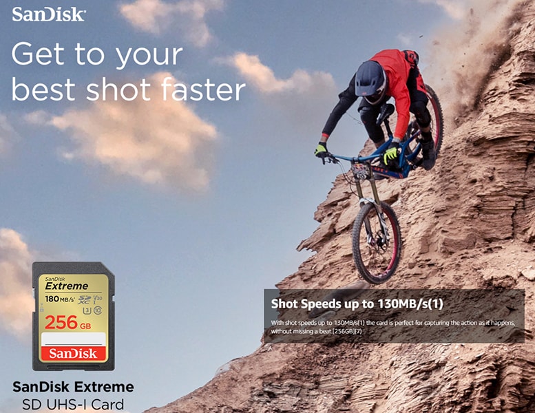 Rated UHS Speed Class 3 (U3) and Video Speed Class 30 (V30)(4), capture sequential burst mode shots without missing a beat.