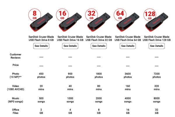 With its stylish, compact design and generous capacity, the Cruzer Blade USB Flash Drive makes it easy to back up, transfer, and share your files. This USB drive lets you carry your photos, movies, music, and personal data wherever you go.