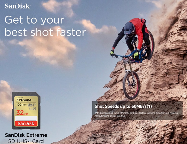 Rated UHS Speed Class 3 (U3) and Video Speed Class 30 (V30)(4), capture sequential burst mode shots without missing a beat.