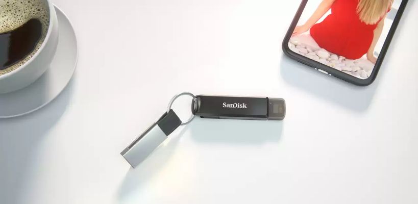 The SanDisk iXpand Flash Drive Luxe comes with not one but two connectors so you can easily move files between your iPhone, iPad Pro, Mac, and USB Type-C devices, including Android phones.