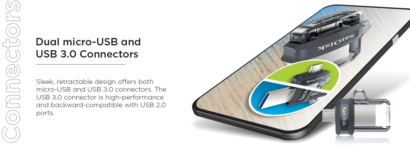 - Retractable design with micro-USB and USB 3.0 connectors