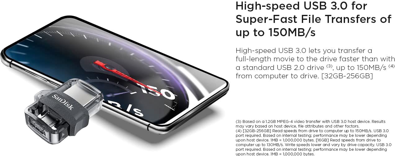 Sandisk 64 GB m3.0 Ultra Dual Flash Drive 150 MB/s Read, SDDD3-064G-I35