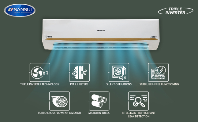 Sansui’s Triple Inverter Condenser controls refrigerant gas flow rate and internal temperature to consume less power & saves on power bills.