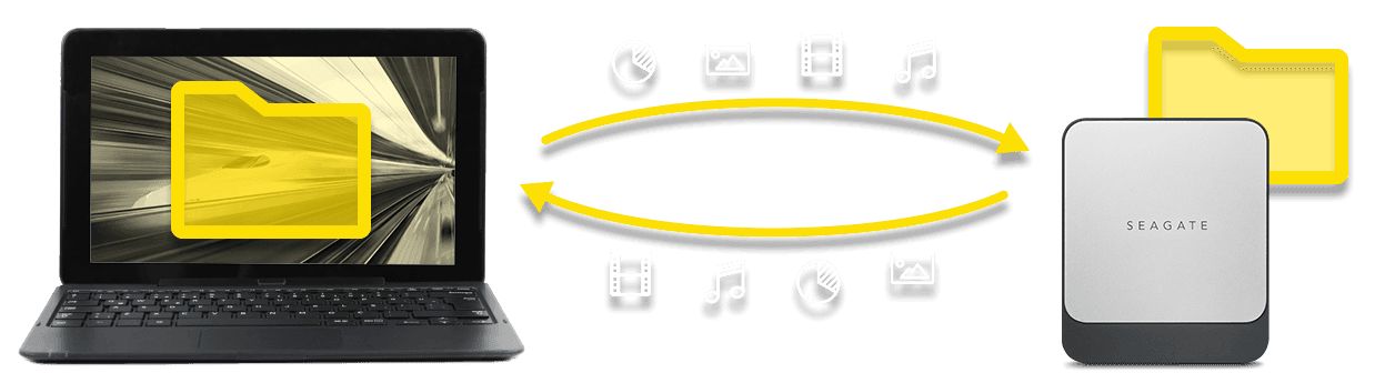 Mirror your files and projects with the included folder syncing software. You can have a designated folder monitored, so that your Fast SSD will automatically keep up with the latest changes to your files.