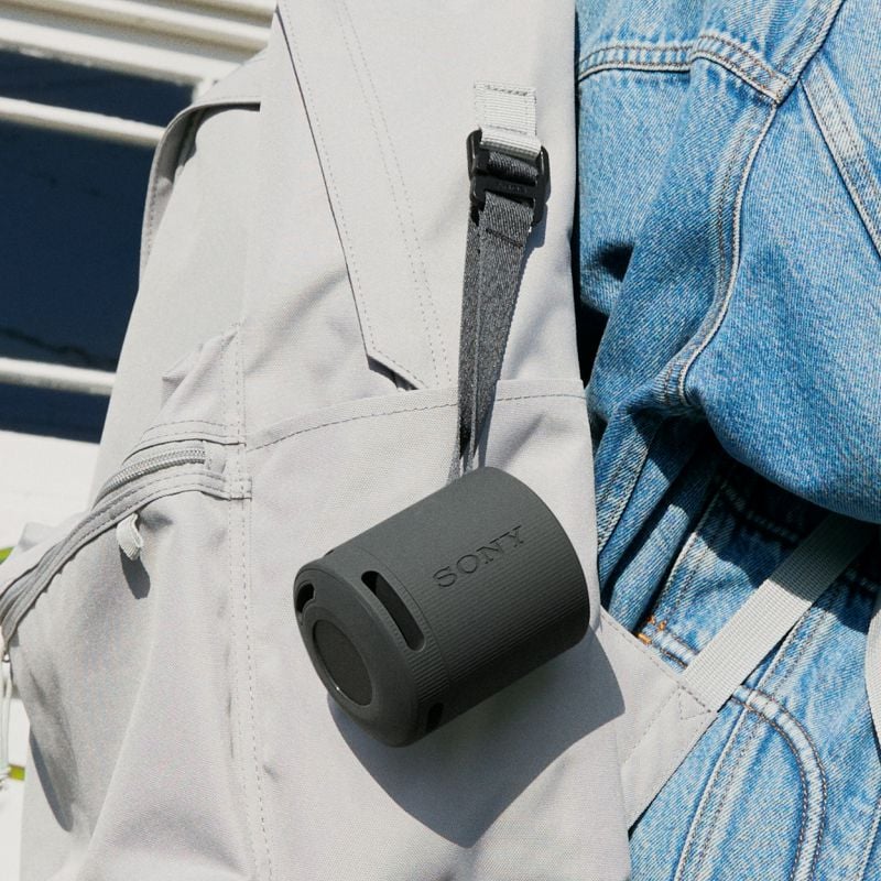 With a specially engineered strap, the super-portable XB100 is easy to travel with. But don’t be fooled by the small size—this compact speaker packs plenty of power.