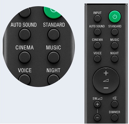 A button for every sound-choose the mode that's right for whatever you're watching or listening to, including Auto, Standard, Cinema and Music. You can also select Night and Voice modes and use subwoofer control to fine-tune your viewing experience.