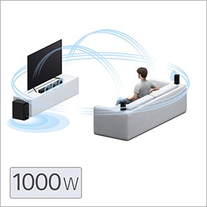 - DescriptionLose yourselves in cinematic sound that's as close to being at the movies as possible. Our discreet 5.1ch Soundbar, with tall-boy rear speakers and 1000 W total power output, fully immerses you in the magic of true surround sound.