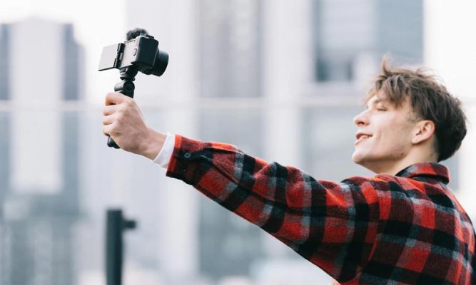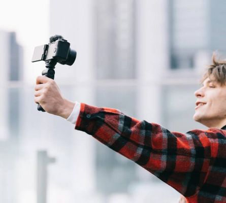 The optional GP-VPT2BT10 makes it even easier to take selfies and shoot from high or low angles. You can also access controls on the grip without reaching for the camera's buttons while shooting. With these controls, you can start and stop recording, handle zoom operations and set the Bokeh Switch to "Defocus" or "Clear".