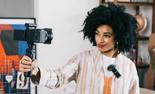 A fixed-focal-length lens makes it easy to shoot a vlog that grabs the viewer's attention. This type of lens creates a smooth, natural background blur that lets the subject stand out. It's also useful when you want a brighter image in a dimly lit setting.