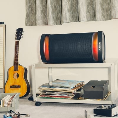 - DescriptionThe XP500 combines a superb sound with plenty of party features to make it a fun and versatile speaker. With Powerful Party Sound by the X-Balanced Speaker Unit and the front high-efficiency tweeter, it sends out rich, clear and high-quality sound. It is perfect for parties, inside or outside the home, has plenty of battery life, is IPX4 Water resistant and has an easy-to-use handle for moving from one party to the next.