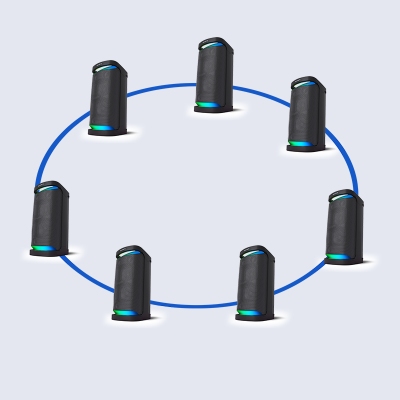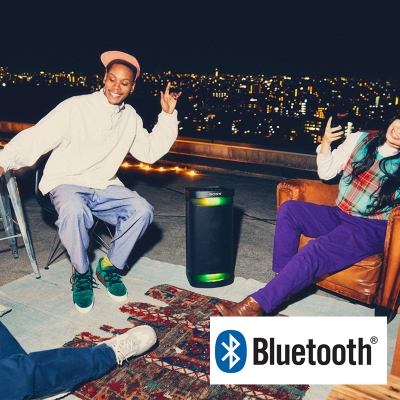 Connect up to 100 wireless speakers with BLUETOOTH technology and the music and lights sync-up so everyone dances to the same beat.