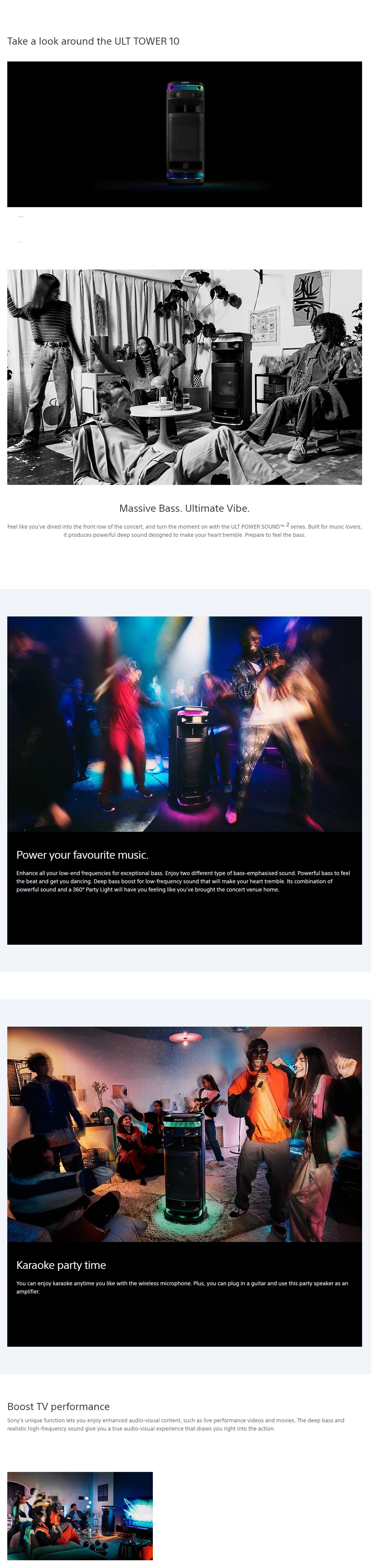Sony ULT Tower 10 Party Speaker with ULT button for Massive Bass and Powerful Sound