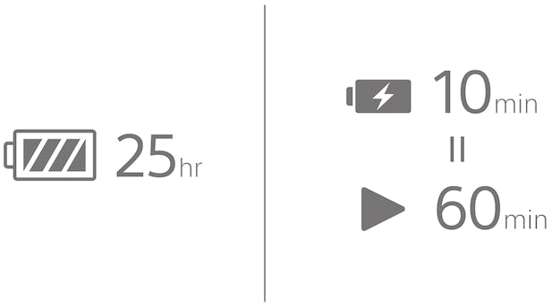 Enjoy up to 25 hours of non-stop music. And if your headphones are running low on power, a 10-minute quick charge will give you up to 60 minutes of playback.