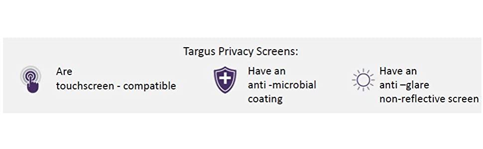A Targus priv acy screen narrows the viewing angle so on-screen data is only visible from directly in front of the screen.