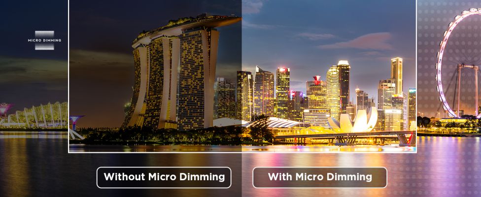 Analyses TV content in 1,296 separate zones, intelligently adjusting brightness and darkness.
