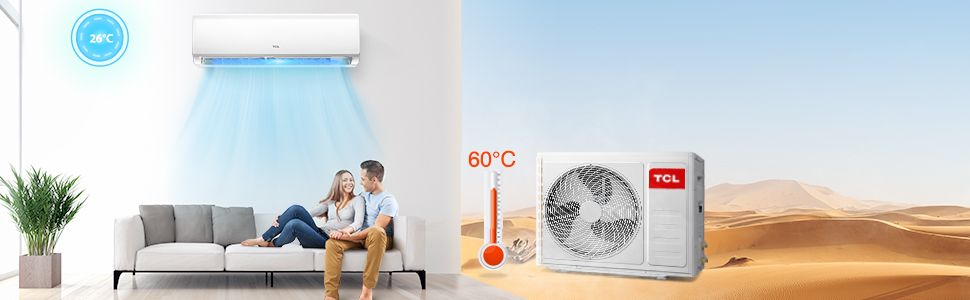 TCL Ultra-Inverter AC applies air-cooled electric control box technology to effectively cool down the temperature of PCB in the outdoor unit.Therefore no cooling decline even at 60°C ambient temperature.