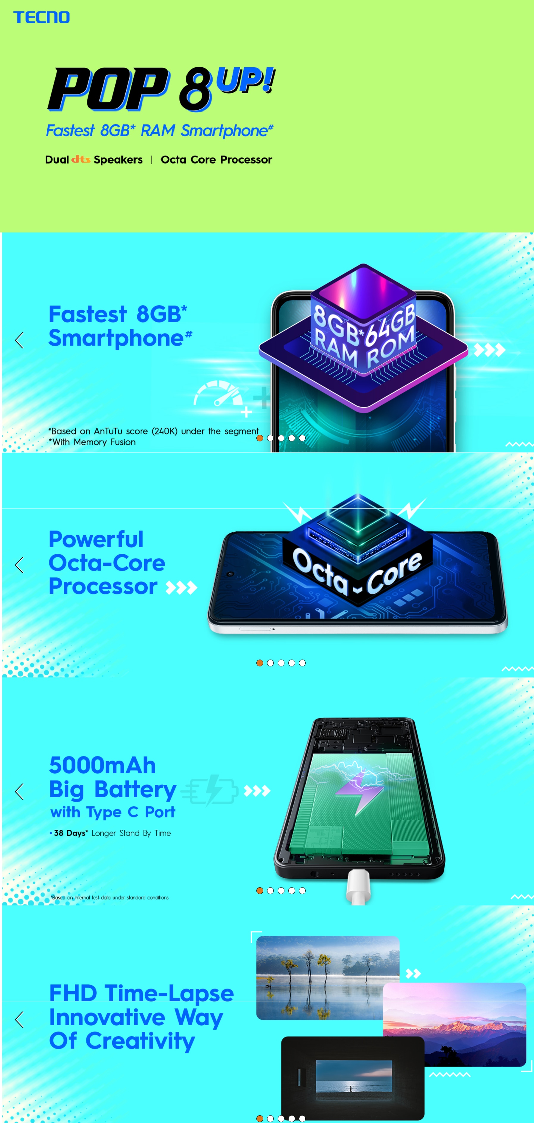 - Segment-first Dual Stereo Speakers equipped with DTS technology