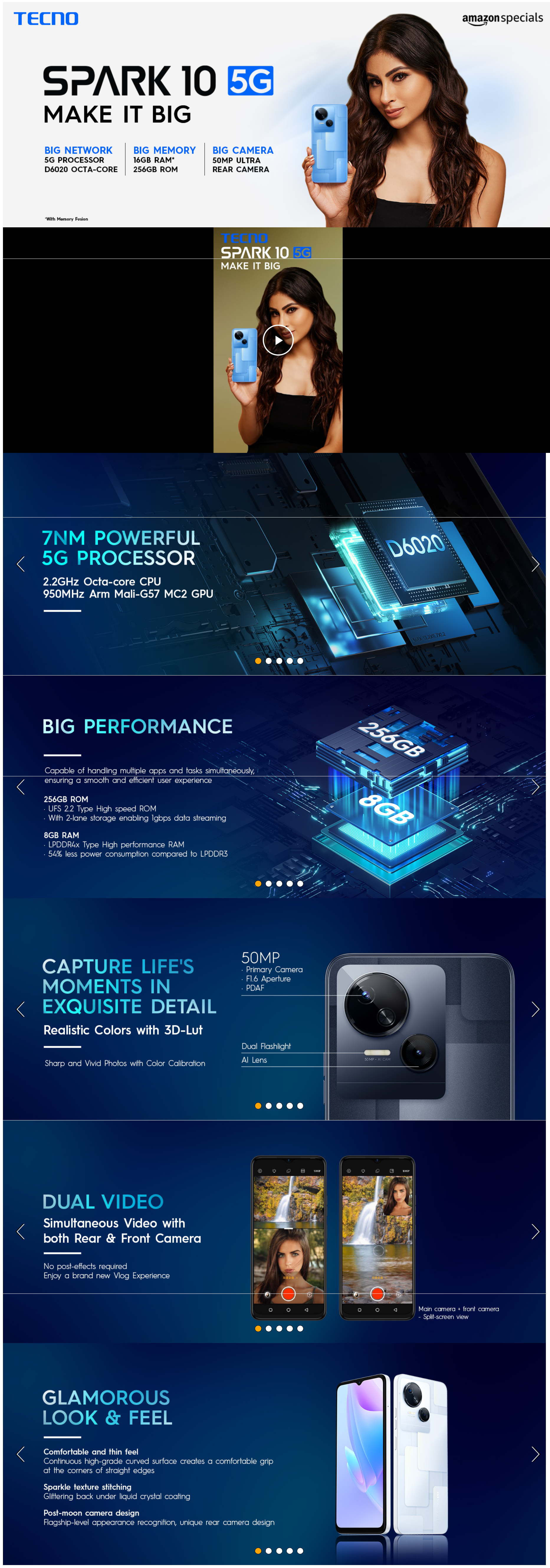 Tecno Spark 10 5G 128GB, 8 GB RAM, Meta Blue, Mobile Phone