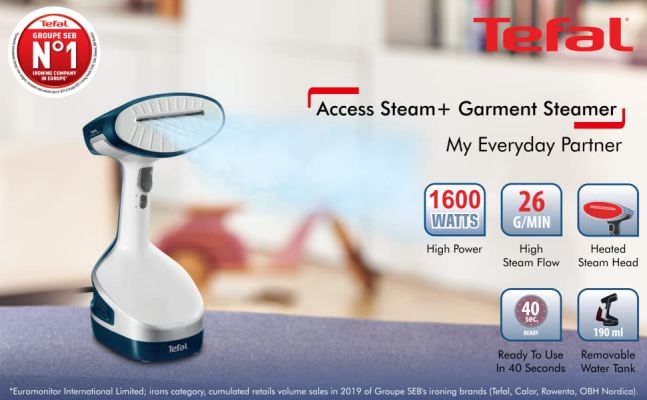 Tefal Access Steam+ Garment Steamer heats up quickly and is ready to use in just 40 seconds, thus making it ideal for easy and convenient ironing.