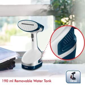 This steamer features a removable water tank that has a capacity of storing 190 ml of water and can efficiently generate the steam to enhance your steam ironing experience and provide you with wrinkle free clothes.