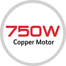 Powerful 750W copper motor grinds toughest of ingredient with ease and perfection.