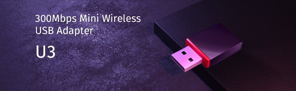 Tenda U3 WiFi Dongle 300Mbps USB Wireless Adapter, 2.4GHz, 2 Internal Antennas, USB 2.0, WPS, Soft AP Mode, Supports Windows 10 / 8.1 / 8/7 / XP, Mac OS 10.7 10.12, Linux (Black)