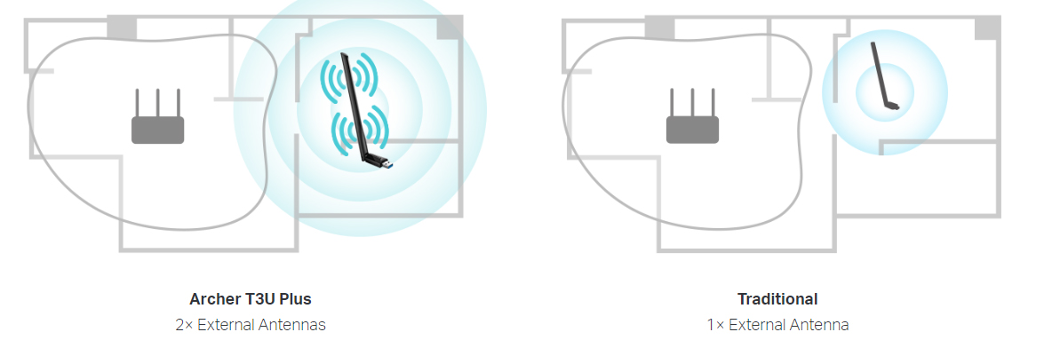 - High-Gain Antennas-Advanced external high-gain antennas greatly enhance the reception and transmission signal strength of the USB adapter