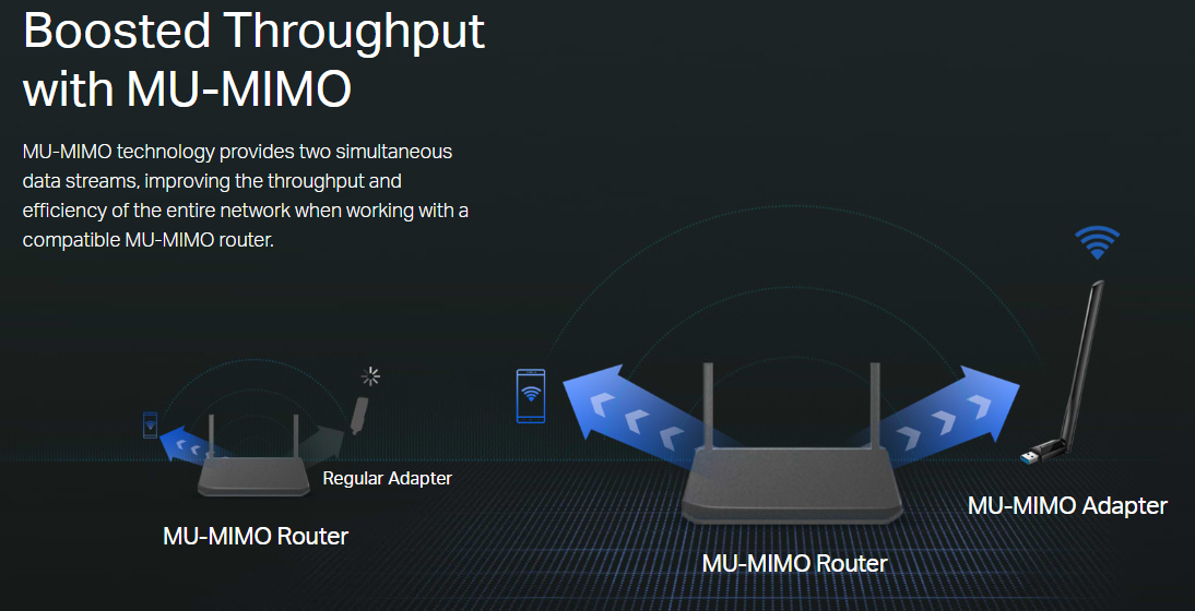 - MU-MIMO Technology-Improves the throughput and efficiency of the whole network with MU-MIMO technology