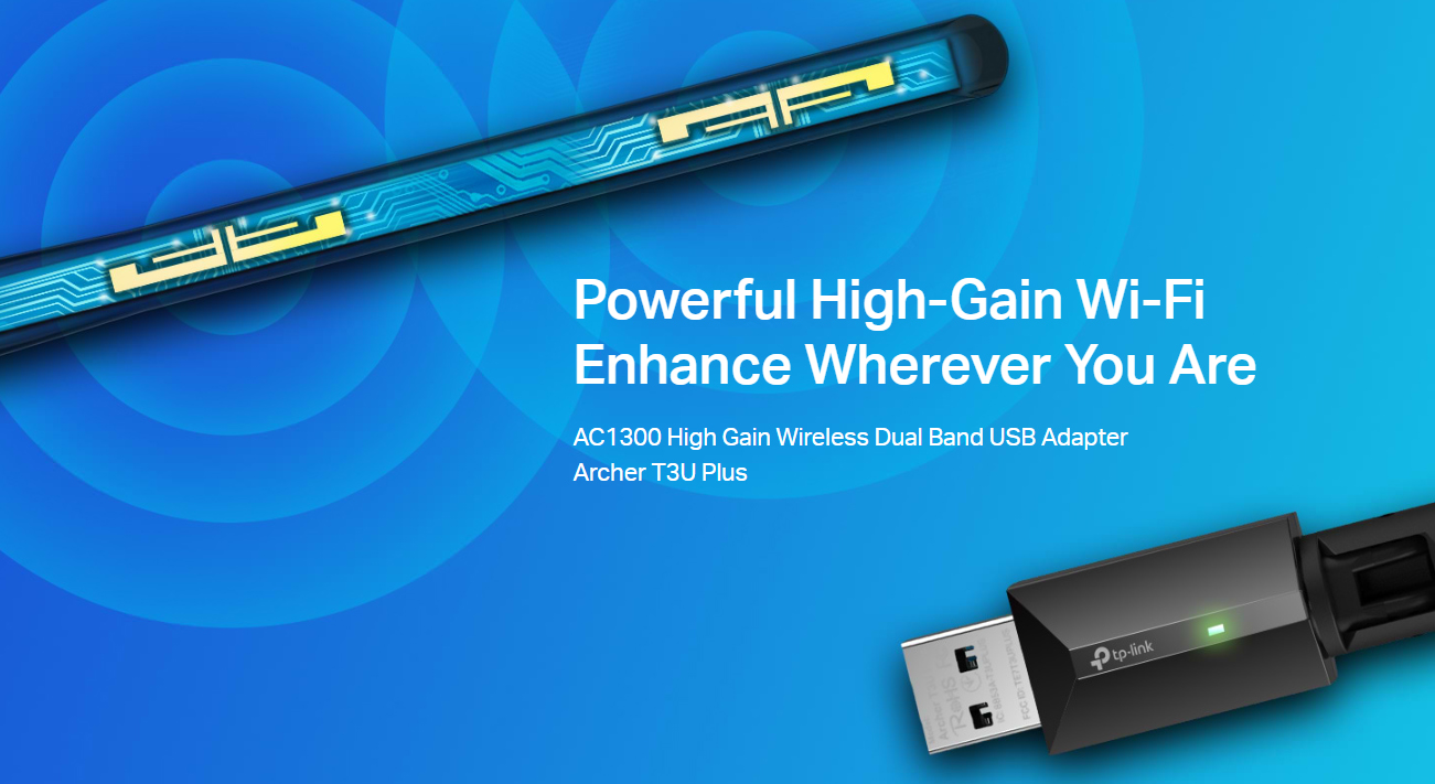 TP-LINK AC1300 High Gain USB 3.0 Wi-Fi Dongle, Wireless Dual Band MU-MIMO WiFi Adapter with High Gain Antenna, Supports Windows 11/10/8.1/8/7/XP/Mac OS 10.9-10.15 (Archer T3U Plus)