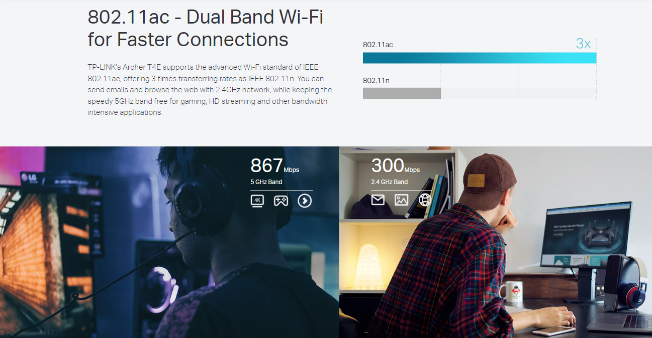 - High Speed Wi-Fi – Up to 1200 Mbps Wi-Fi speeds (867 Mbps on 5 GHz band and 300 Mpbs on 2.4 GHz band)