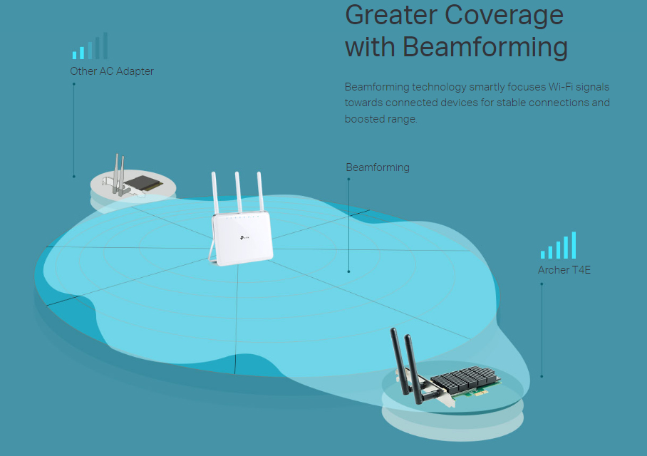 - Beamforming – Wi-Fi signals are strengthened towards certain direction where client exists