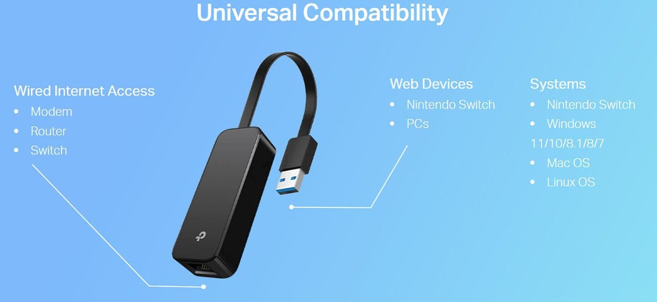 TP-Link USB to Ethernet Adapter (UE306), Foldable USB 3.0 to Gigabit Ethernet LAN Network Adapter, Supports Nintendo Switch, Windows 11/10/8.1/8/7 Mac OS and Linux OS, Plug and Play
