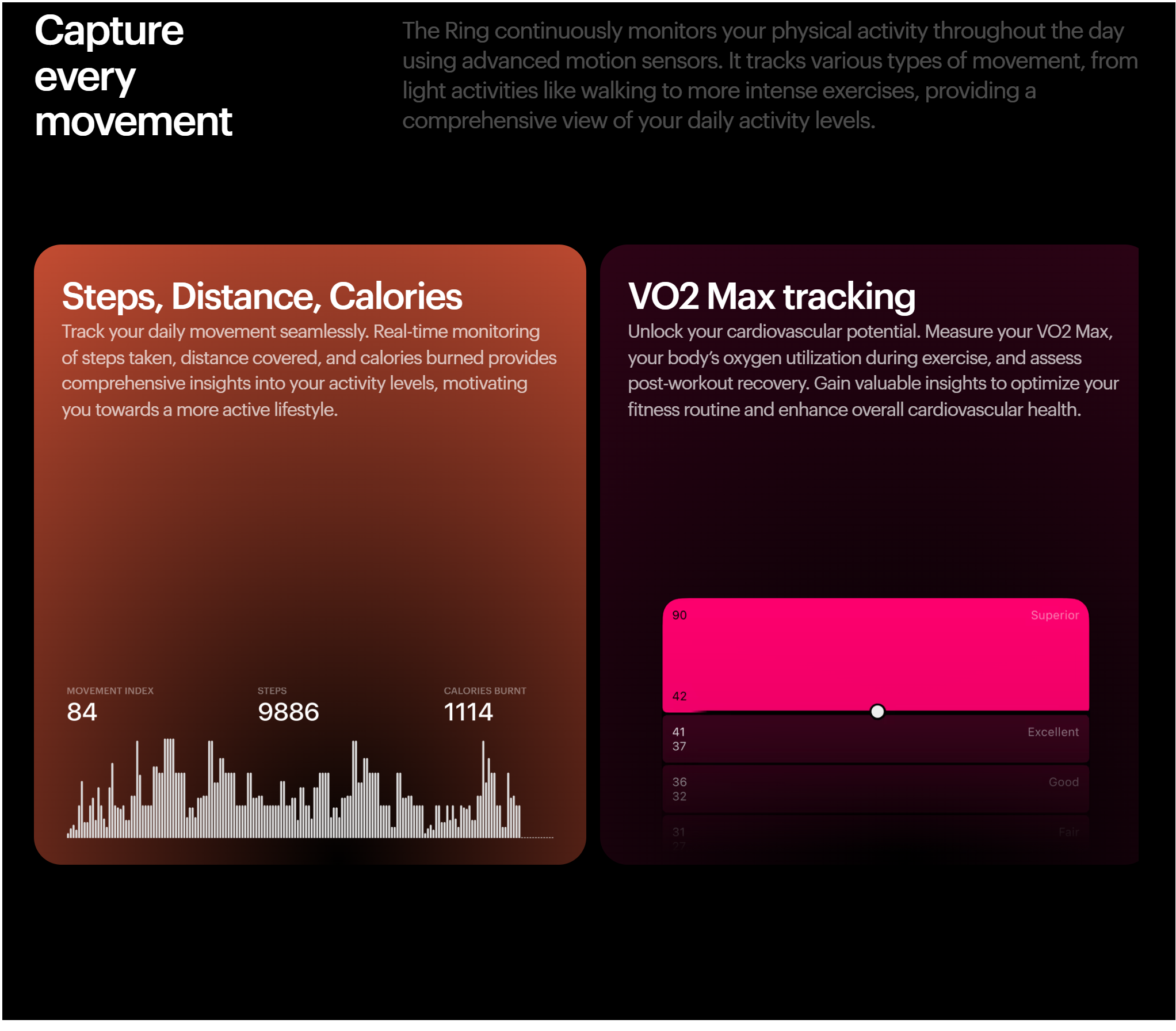 - DESIGNED TO KEEP YOU MOVING - The 'Movement Index' is designed to increase your non-exercise energy usage through the day. With this all-in-one activity and fitness tracker, you can track steps, workouts and calories for insights into your all-day activity. All features work together seamlessly, to make sure you get the most out of the smart ring. Workout Tracking is now easy, with a dedicated Workout Mode that tracks Heart Rate during workouts — you can get insights into your cardiovascular response, track intensity levels, and make informed decisions to improve your fitness outcomes