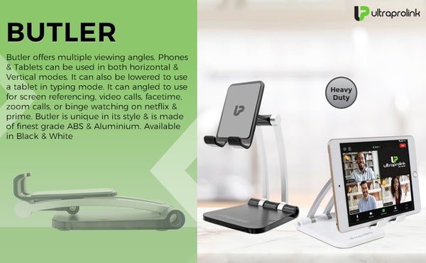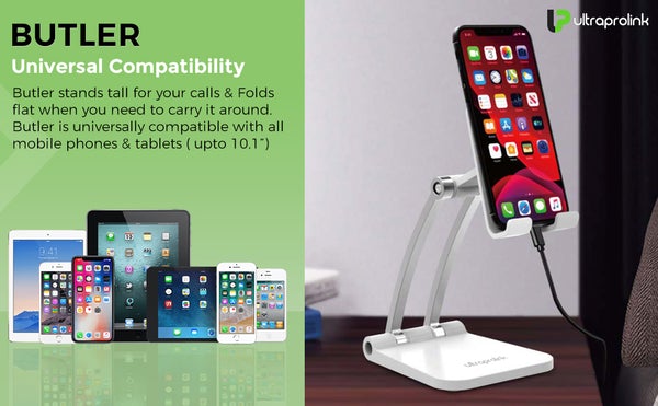 Butler stands tall for your calls & Folds flat when you need to carry it around. Butler is universally compatible with all mobile phones & tablets.