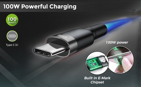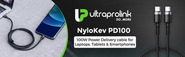 UltraProlink NyloKev PD100 UL1058 is the smarter & faster way to charge. he only High Power Cable you will ever need for your Smartphones, Tablets & Laptops. When paired with an appropriate power delivery charger, this cable can charge power delivery enabled devices of upto 100W max and transfer data at speeds of 480mbits/s. This USB Type C to Type C power delivery cable will connect seamlessly to all the new crop of devices coming these days which are power hungry. Strengthened with Tangle-Free braided nylon on the outside & Kevlar on the inside, and bend tested 5000 times for durability. This Fast charge PD cable is also downward compatible with PD 18W,20W,30W,45W,61W & 87W.