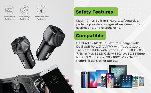 UltraProlink UM1043 Mach 17 Car Charger with Built-in Smart IC safeguards