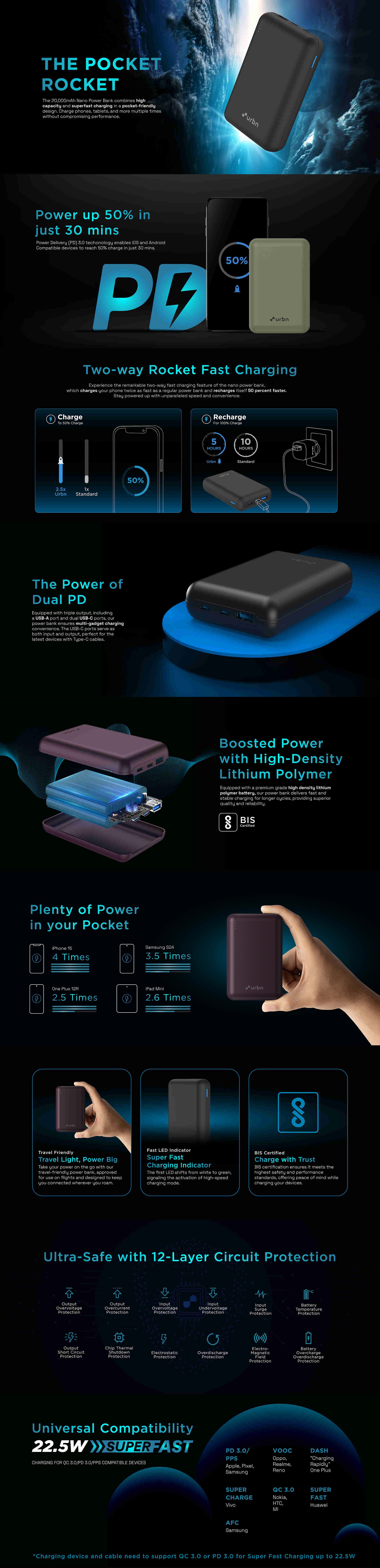 Urbn 20000 mAh 22.5W Nano Power Bank, Camo