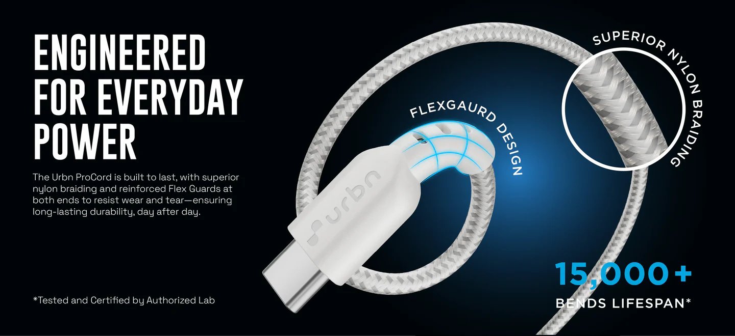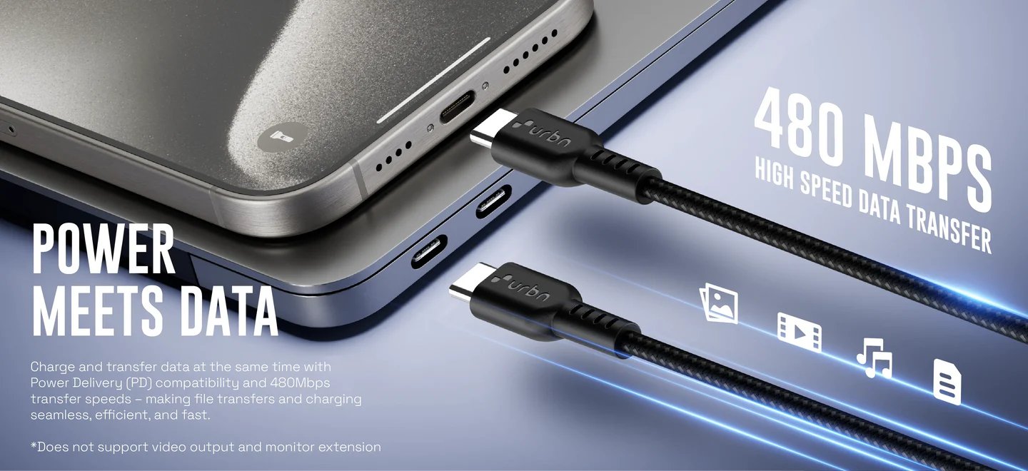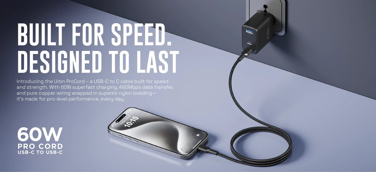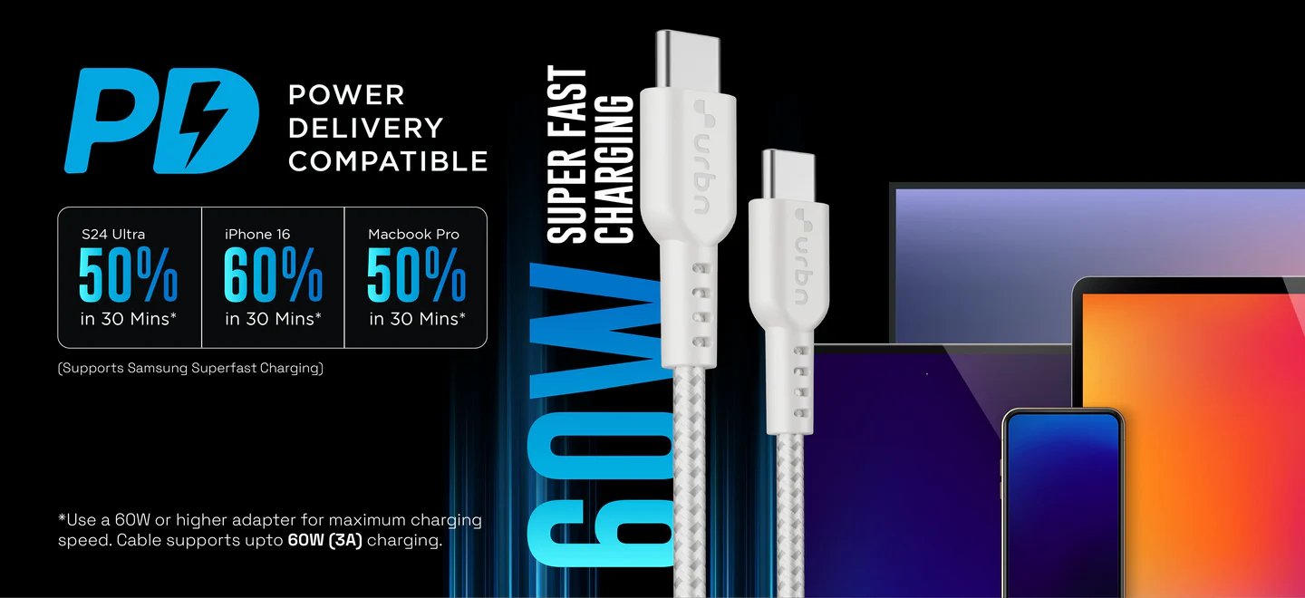 Urbn 60 W Pro Cord USB Type C to Type C Power Cable, White