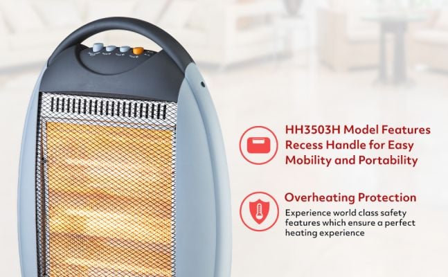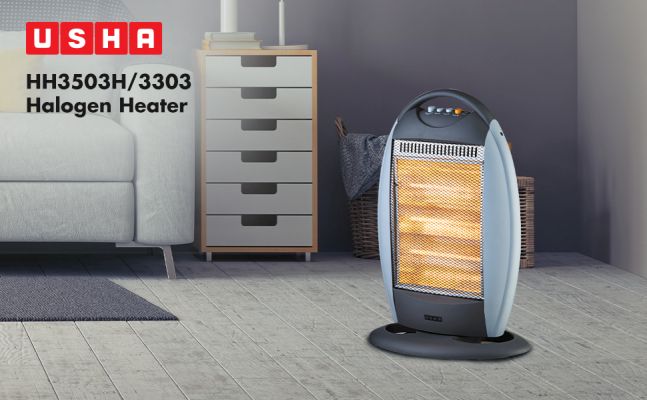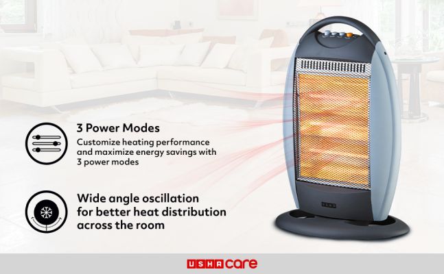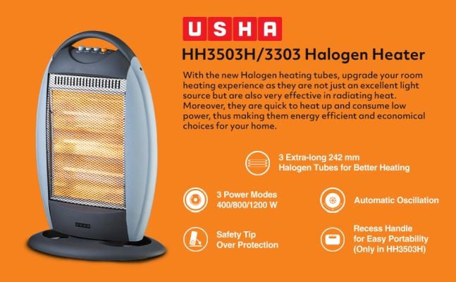 Usha 3303 1200-Watt Halogen Room Heater with Oscillation Function (White)