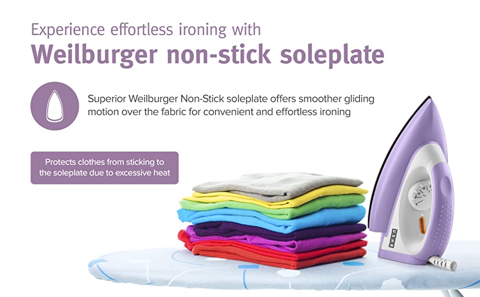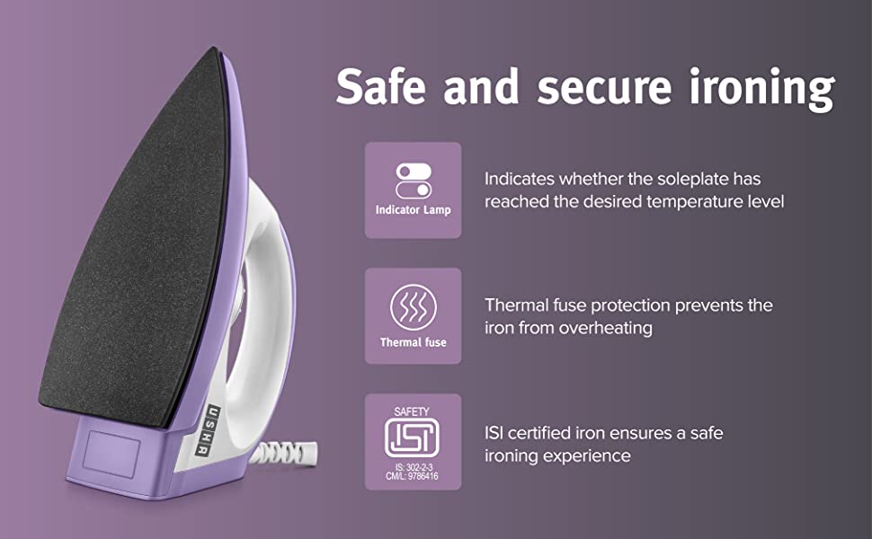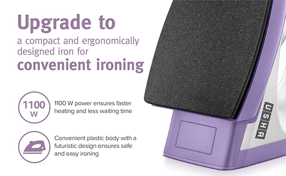 Usha Armor AR1100WB, 1100 Watts, Dry Iron, Lightweight Body, Non-stick Soleplate, Overheat Safety Protection, Purple