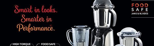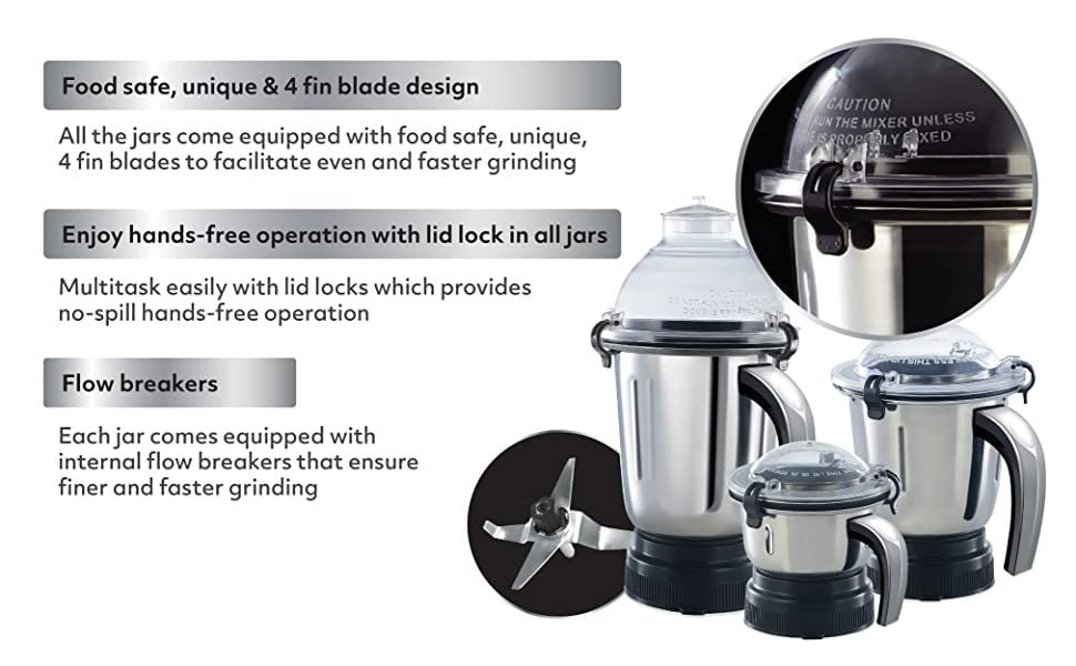 Usha Maximus Plus 800 Watt Mixer Grinder with 4 Stainless Steel Jar, Grey