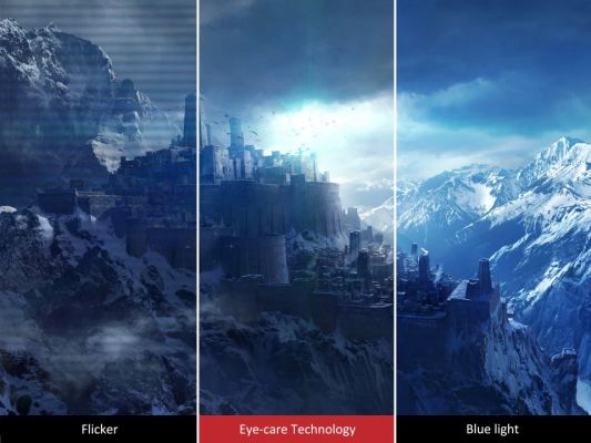 Flicker-Free technology and a Blue Light Filter help reduce eye strain and fatigue from extended screen time during a gaming marathon.