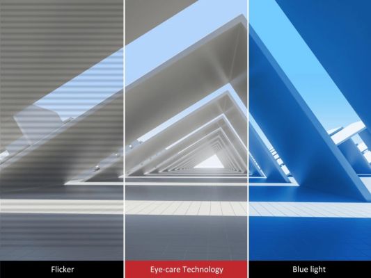 Flicker-Free technology and a Blue Light Filter help reduce eye strain and fatigue from extended screen time during a gaming marathon.