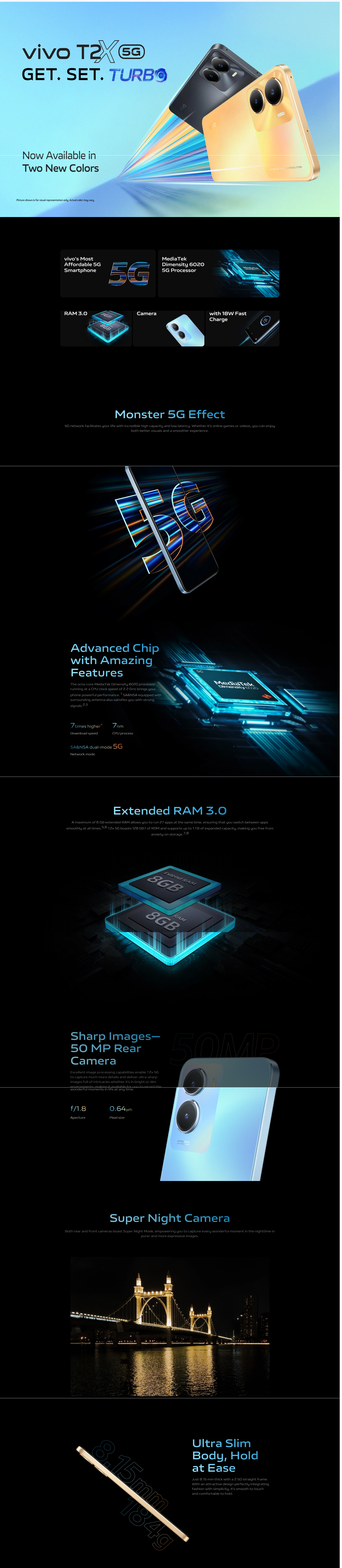 Vivo T2x 5G 128 GB, 4 GB RAM, Marine Blue, Mobile Phone