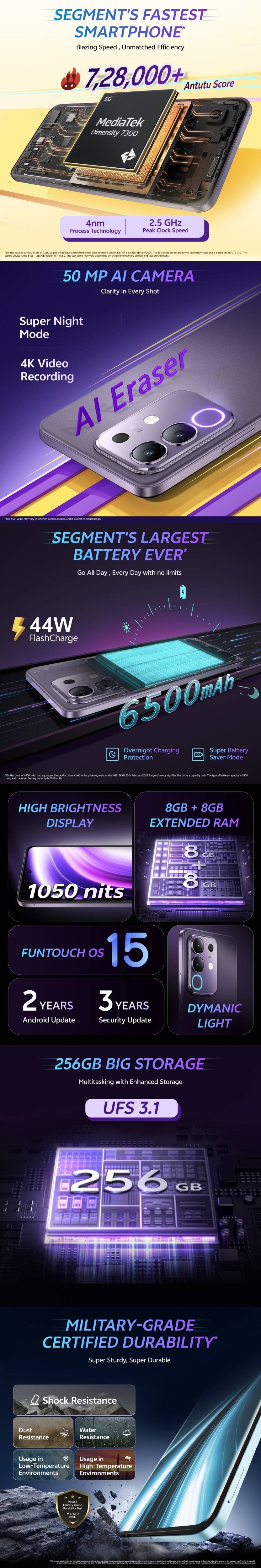Vivo T4x 5G 128 GB, 8 GB RAM, Glacial Teal, Mobile Phone
