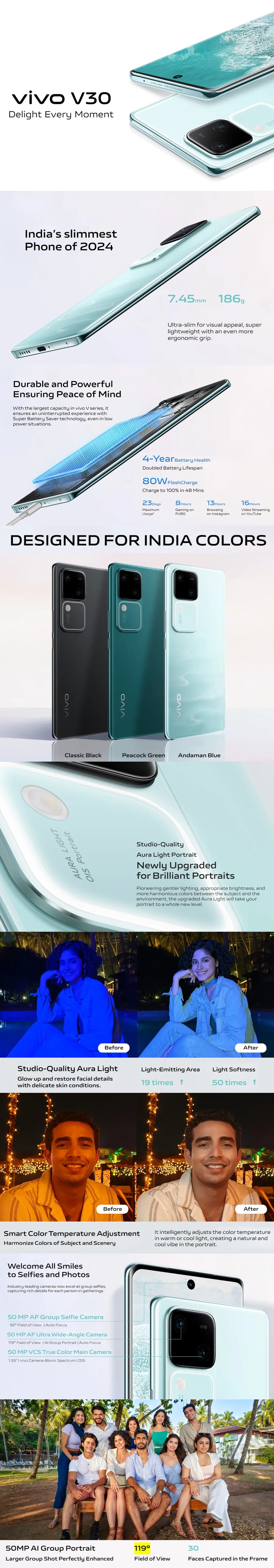 Vivo V30 128 GB, 8 GB RAM, Mobile Phone, Green