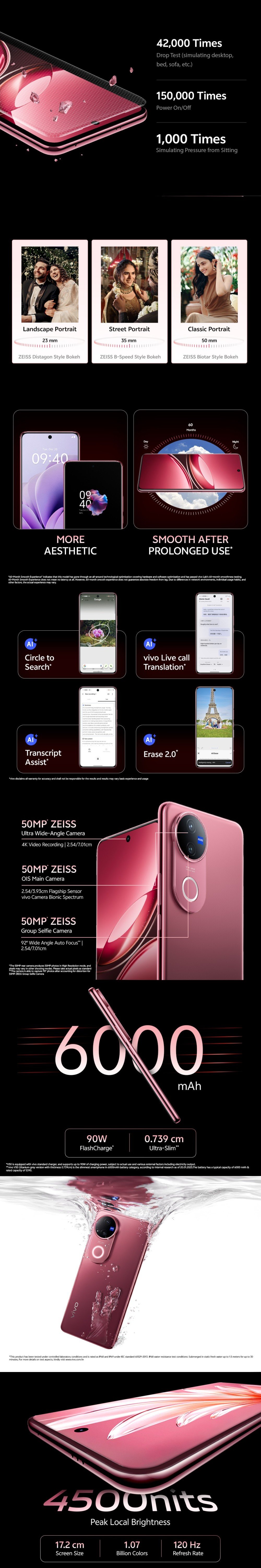 Vivo V50 5G 128 GB, 8 GB RAM, Titanium Grey, Mobile Phone