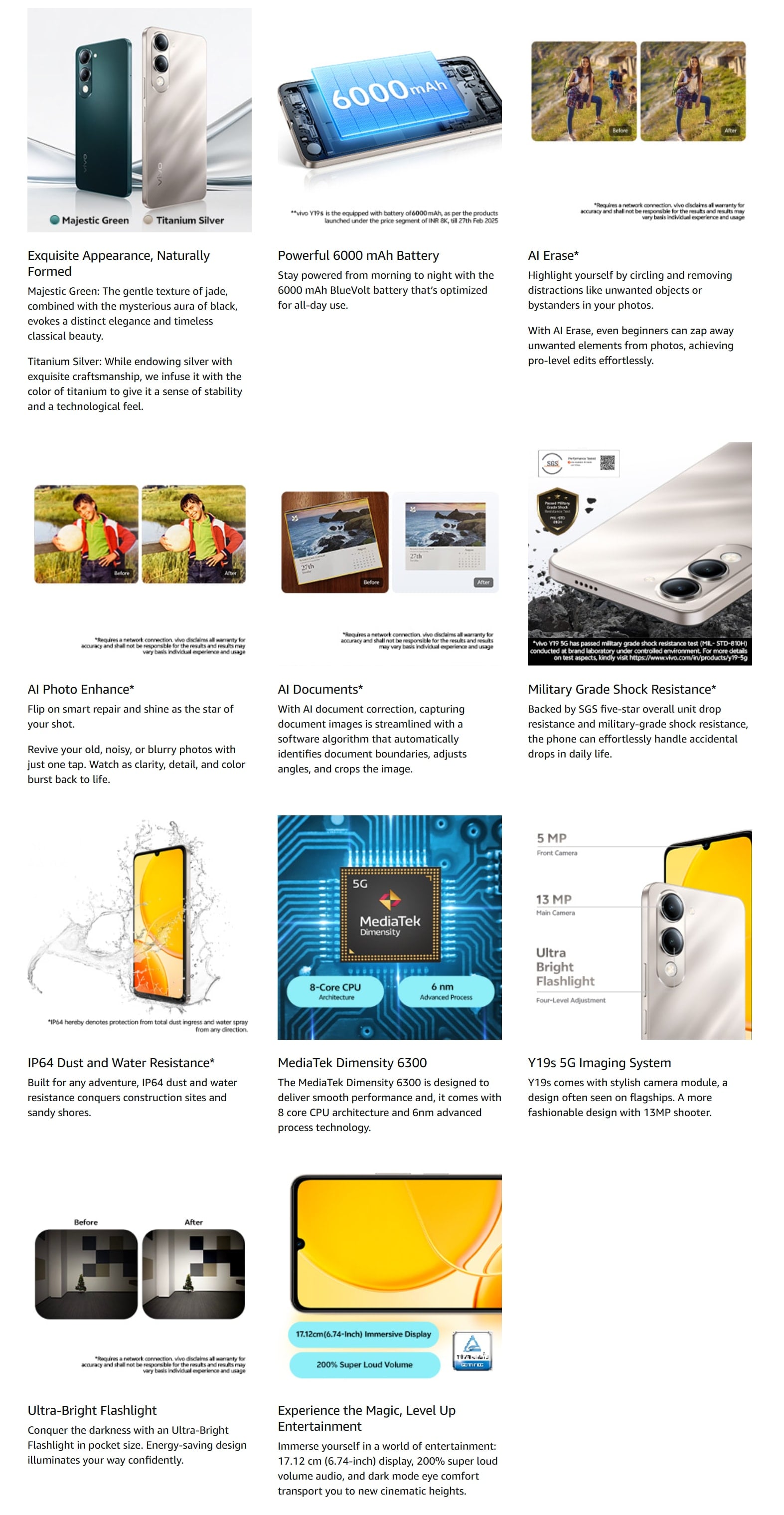 Vivo Y19s 5G 128 GB, 6 GB RAM, Titanium Silver, Mobile Phone