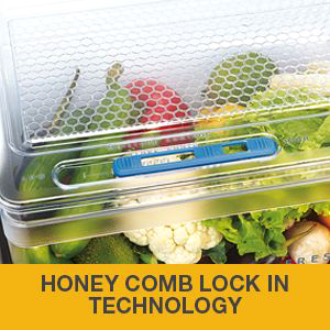 Vegetable Crisper with Honey Comb Moisture Lock-in Technology maintains optimum moisture in your vegetables and keeps them fresher for longer.