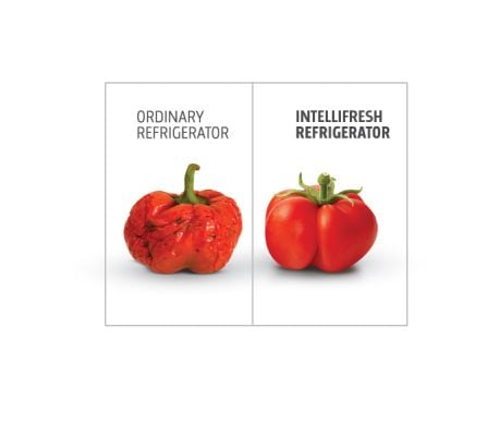 In ordinary refrigerators, the cold air comes directly in contact with fruits and vegetables and robs them of their intrinsic moisture. But in Intellifresh Convertible range, the cold air flows around the compartment, keeping its contents cool while retaining their moisture and natural freshness.